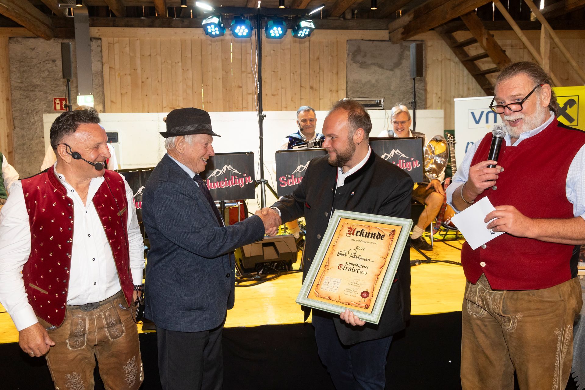 Der rüstige und immer bestens gelaunte Preisträger wird im Dezember 2025 90 Jahre alt. Das Beste sei seine Familie, die 5 Kinder, die 9 Enkelkinder und die 7 Urenkel. Neben der Familie sei auch das Mitwirken in Vereinen eine wichtige Lebenseinstellung. Unter anderen ist der "schneidigste TIROLER 2025" immer noch aktives Mitglied der Musikkapelle Flauerling, und das seit inzwischen 75 Jahren. 2012 wurde Ernst Pickelmann mit dem goldenes Verdienstzeichen des Blasmusikverbandes ausgezeichnet. Ernst war auch 22 Jahre lang Obmann der Bergrettung Flaurling, uvm..